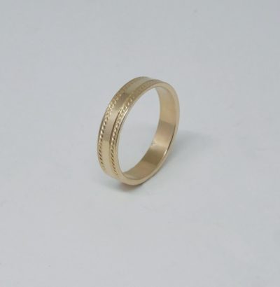 Kotimainen Top Gold valmistaa upeat kulta- ja timanttikorunsa Heinolassa, jo vuodesta 1988. Tämä upea, 4mm kultasormus, jonka reunoja koristaa punos, toimii niin kihla-, vihki- kuin käyttösormuksenakin. Materiaali on 14 karaatin kultaa, malli flakka ja leveyttä tältä mallilta löytyy 4mm. Tämä on ihanteellinen sormusmalli yhdistää myös muihin sormusmalleihin. Huomaathan, että tähän sormukseen on mahdollista saada myös kaiverrus!