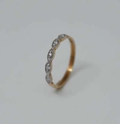 Kotimainen Top Gold valmistaa upeat kulta- ja timanttikorunsa Heinolassa, jo vuodesta 1988. Tämä upea yksilö on keltakultaa ja siinä on 5x0,01ct w/si timantit. Tämä kaunis timanttisormus toimii niin kihla, vihki- kuin käyttösormuksenakin. Materiaali on 14 karaatin kultaa. Tämä on ihanteellinen sormusmalli yhdistää myös muihin sormusmalleihin. Huomaathan, että suurin osa sormuksen kokovalikoimasta valmistetaan tilauksesta juuri sinulle sopivaksi, joten on hyvä varata 10-20 arkipäivää odotusaikaa tilauksen saapumiseen.