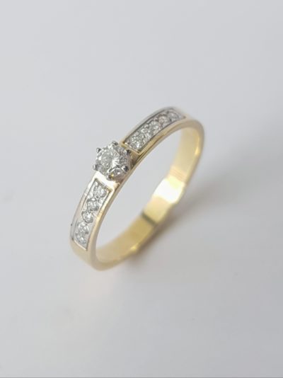 Kotimainen Top Gold valmistaa upeat kulta- ja timanttikorunsa Heinolassa, jo vuodesta 1988. Tämä upea yksilö on keltakultaa ja siinä on 0,10ct+10x0,01ct w/si timantit. Tämä kaunis timanttisormus toimii niin kihla-, vihki- kuin käyttösormuksenakin. Materiaali on 14 karaatin keltakultaa. Tämä on ihanteellinen sormusmalli yhdistää myös muihin sormusmalleihin. Huomaathan, että suurin osa sormuksen kokovalikoimasta valmistetaan tilauksesta juuri sinulle sopivaksi, joten on hyvä varata 10-20 arkipäivää odotusaikaa tilauksen saapumiseen.