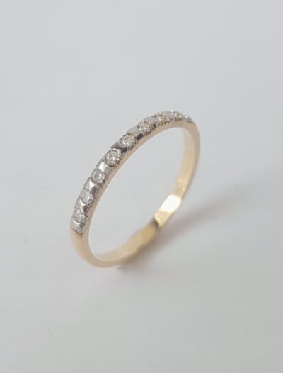 Kotimainen Top Gold valmistaa upeat kulta- ja timanttikorunsa Heinolassa, jo vuodesta 1988. Tämä upea yksilö on keltakultaa ja siinä on 9x0,01ct w/si timantit. Tämä kaunis, siro, rivitimanttisormus toimii niin kihla, vihki- kuin käyttösormuksenakin. Materiaali on 14 karaatin kultaa. Tämä on ihanteellinen sormusmalli yhdistää myös muihin sormusmalleihin. Huomaathan, että suurin osa sormuksen kokovalikoimasta valmistetaan tilauksesta juuri sinulle sopivaksi, joten on hyvä varata 10-20 arkipäivää odotusaikaa tilauksen saapumiseen.