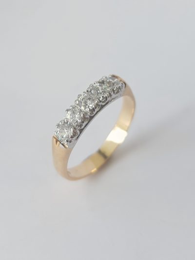 Kotimainen Top Gold valmistaa upeat kulta- ja timanttikorunsa Heinolassa, jo vuodesta 1988. Tämä upea yksilö on keltakultaa ja siinä on 5x0,10ct w/p timantit. Tämä kaunis, klassinen, rivitimanttisormus toimii niin kihla, vihki- kuin käyttösormuksenakin. Materiaali on 14 karaatin kultaa. Tämä on ihanteellinen sormusmalli yhdistää myös muihin sormusmalleihin. Huomaathan, että suurin osa sormuksen kokovalikoimasta valmistetaan tilauksesta juuri sinulle sopivaksi, joten on hyvä varata 10-20 arkipäivää odotusaikaa tilauksen saapumiseen.