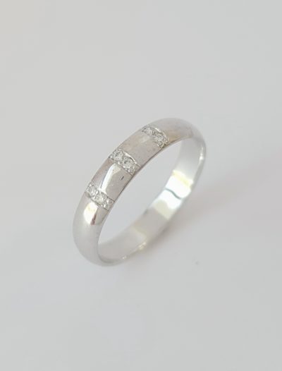 Kotimainen Top Gold valmistaa upeat kulta- ja timanttikorunsa Heinolassa, jo vuodesta 1988. Tämä upea yksilö on valkokultaa ja siinä on 6x0,01ct w/si timantit. Tämä kaunis, 4mm puolipyöreän rungon, timanttisormus toimii niin kihla, vihki- kuin käyttösormuksenakin. Materiaali on 14 karaatin palladium valkokultaa. Tämä on ihanteellinen sormusmalli yhdistää myös muihin sormusmalleihin. Huomaathan, että suurin osa sormuksen kokovalikoimasta valmistetaan tilauksesta juuri sinulle sopivaksi, joten on hyvä varata 10-20 arkipäivää odotusaikaa tilauksen saapumiseen.