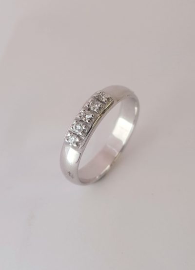 Kotimainen Top Gold valmistaa upeat kulta- ja timanttikorunsa Heinolassa, jo vuodesta 1988. Tämä upea yksilö on valkokultaa ja siinä on 5x0,02ct w/si timantit. Tämä kaunis, 4mm puolipyöreän rungon, rivitimanttisormus toimii niin kihla, vihki- kuin käyttösormuksenakin. Materiaali on 14 karaatin palladium valkokultaa. Tämä on ihanteellinen sormusmalli yhdistää myös muihin sormusmalleihin. Huomaathan, että suurin osa sormuksen kokovalikoimasta valmistetaan tilauksesta juuri sinulle sopivaksi, joten on hyvä varata 10-20 arkipäivää odotusaikaa tilauksen saapumiseen.