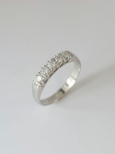 Kotimainen Top Gold valmistaa upeat kulta- ja timanttikorunsa Heinolassa, jo vuodesta 1988. Tämä upea yksilö on keltakultaa ja siinä on 5x0,03ct w/p timantit. Tämä kaunis, klassinen-rivitimanttisormus toimii niin kihla, vihki- kuin käyttösormuksenakin. Materiaali on 14 karaatin kultaa. Tämä on ihanteellinen sormusmalli yhdistää myös muihin sormusmalleihin. Huomaathan, että suurin osa sormuksen kokovalikoimasta valmistetaan tilauksesta juuri sinulle sopivaksi, joten on hyvä varata 10-20 arkipäivää odotusaikaa tilauksen saapumiseen.