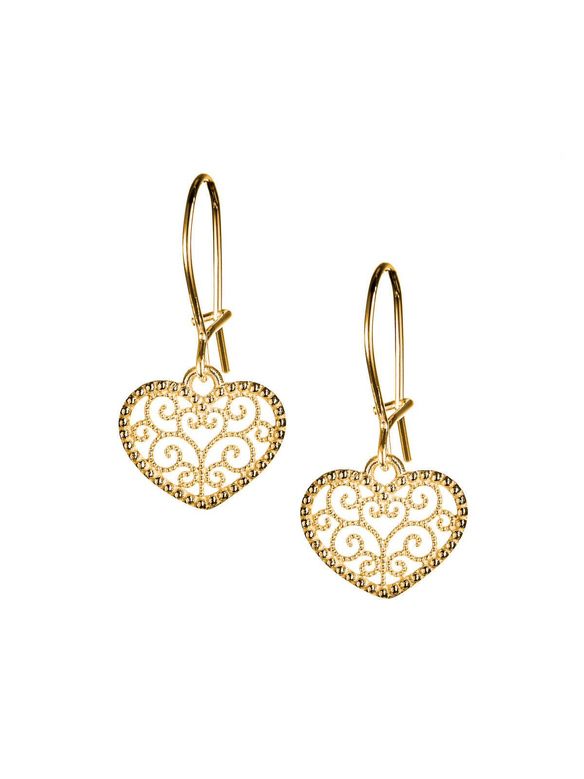 Sydämellinen mini koukkukorvakorut ihastuttavat persoonallisuudellaan! Kaunista muotoilua olevat korvakorut on valmistettu keltakullatusta 925 hopeasta. Yhdistä nämä kaunottaret mieleisesi riipuksen kanssa ja luo sydämellinen kokonaisuus!