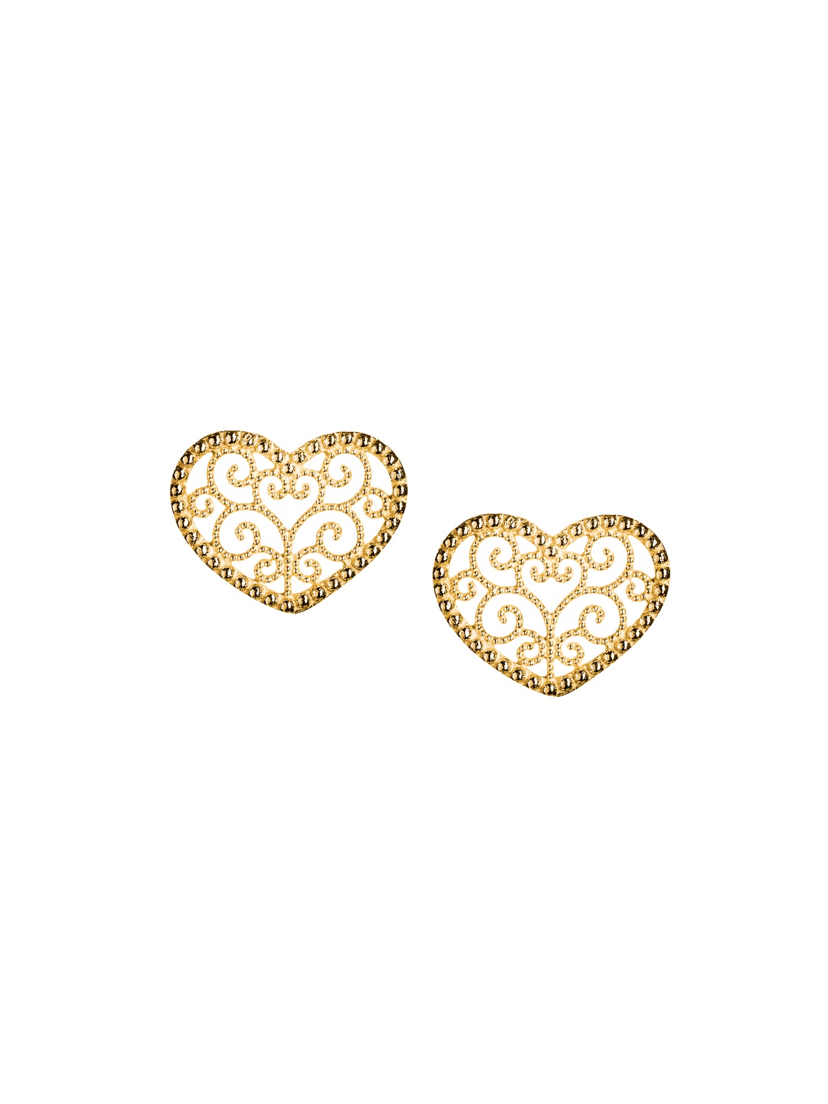 Sydämellinen tappikorvakorut sopivat erinomaisesti jokapäiväiseen käyttöön! Kauniit ja persoonalliset keltakullatusta 925 hopeasta valmistetut korvakorut ovat kestävät ja kevyet. Yhdistä korvakorut mieleisesi riipuksen kanssa ja luo sydämellinen kokonaisuus!