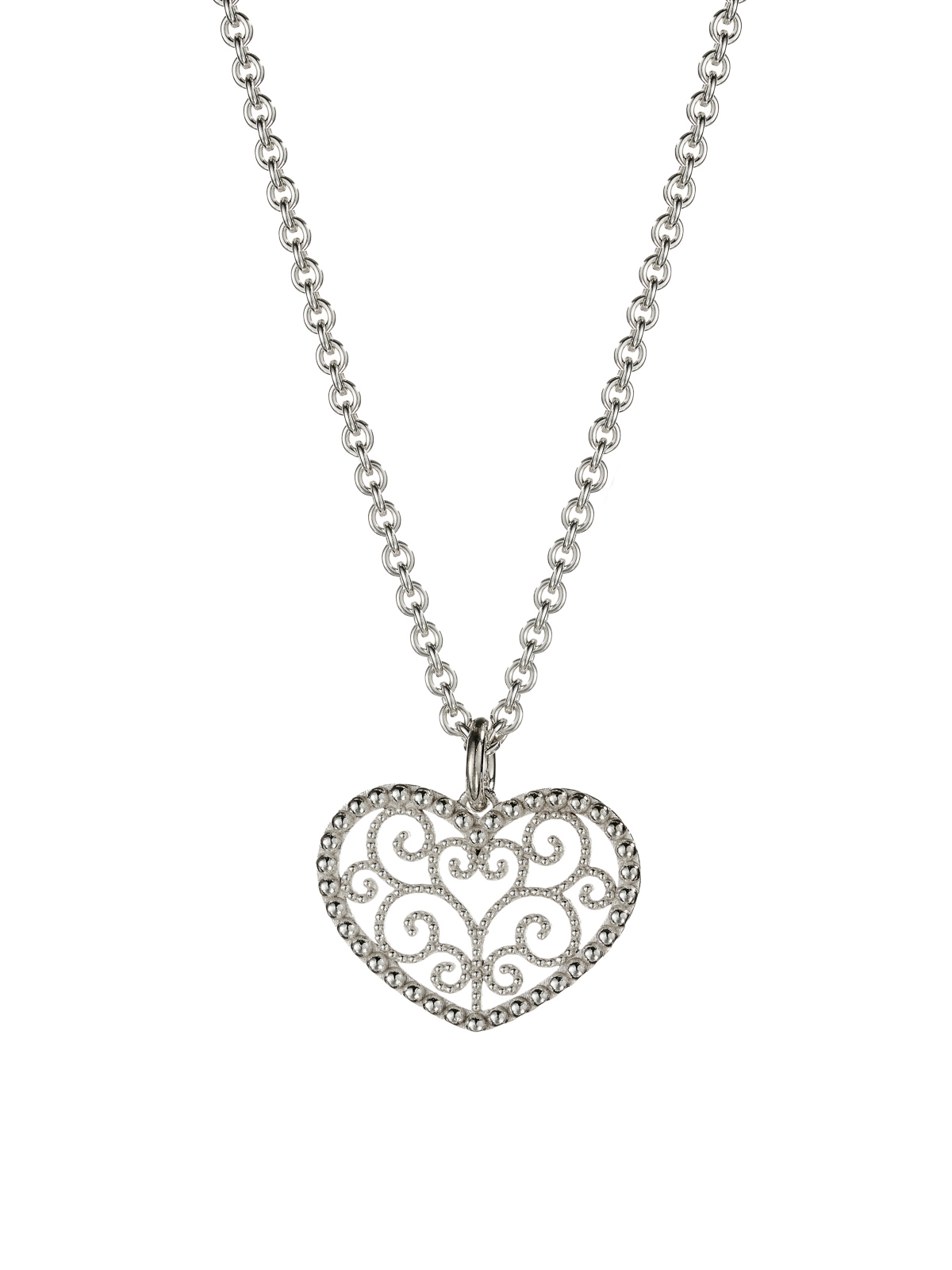 Sydämellinen pieni riipus on siro kaunotar niin arkeen kuin juhlaan! Kaunis ja herkkä filigraanisydän lepää ajattomassa ankkuriketjussa. Koru on valmistettu 925 hopeasta. Sydämellinen on ihastuttava koko perheen lempikoru!