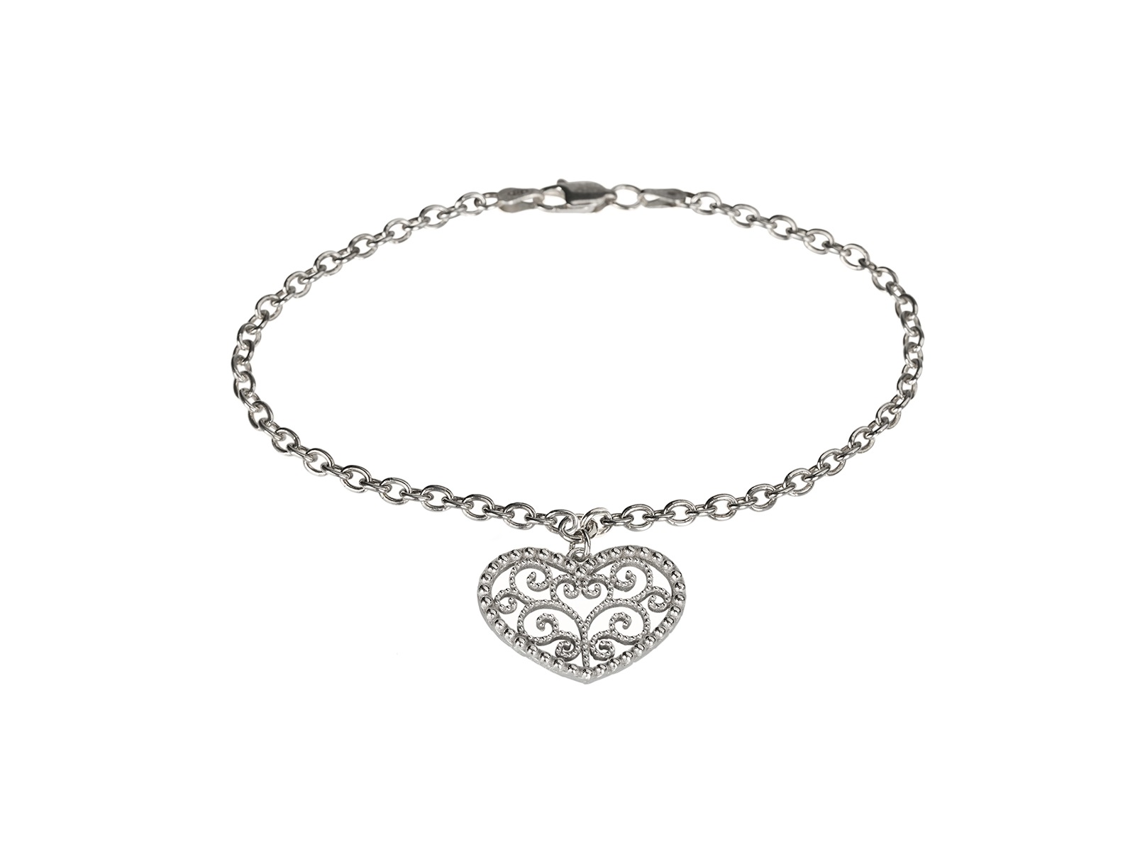 Sydämellinen rannekoru on siro kaunotar niin arkeen kuin juhlaan! Kaunis ja herkkä filigraanisydän lepää ajattomassa ankkuriketjussa. Koru on valmistettu 925 hopeasta. Sydämellinen on ihastuttava koko perheen lempikoru!