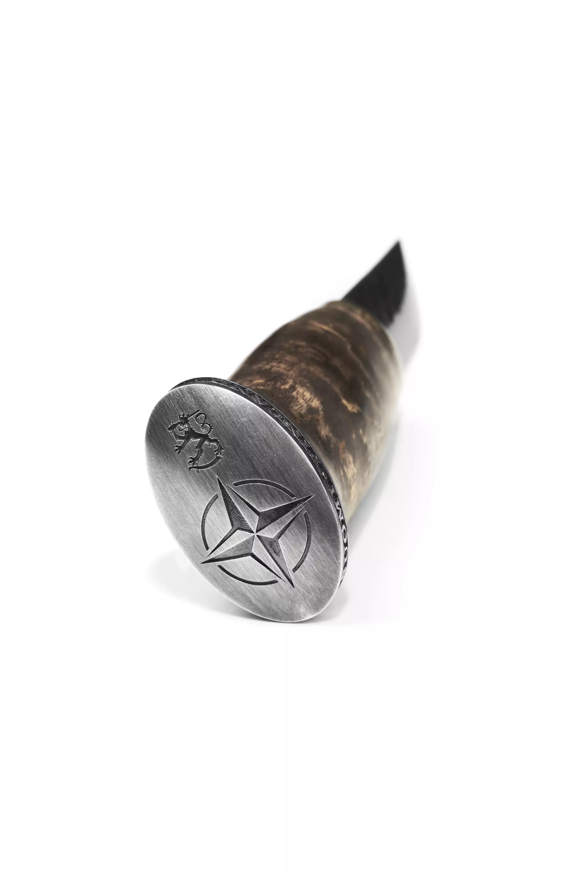 Puukon hoito-ohjeet Teroitus: • Hio ensin terän molemmat sivut karkealla hiomakivellä lappeen suuntaisesti, kunnes terän suuhun muodostuu "kierrettä". • Hio kierre pois hiomakiven sileämmällä puolella. • Käytä hiontaan myös vettä. • Puhdista ja kuivaa terä. • Teroita puukko säännöllisesti niin vältyt vaativalta kertateroitukselta. Tupin hoito: • Käsittele puukon tuppi tarvittaessa nahanhoitoaineella. Puukon hoito: • Älä pese hiiliteräpuukkoa astianpesukoneessa. • Kuivaa ja puhdista terä aina käytön jälkeen. • Pidä puukkoa tupessa, ja säilytä kuivassa paikassa. • Käsittele hiiliterä aika-ajoin ruokaöljyllä tai parafiiniöljyllä.