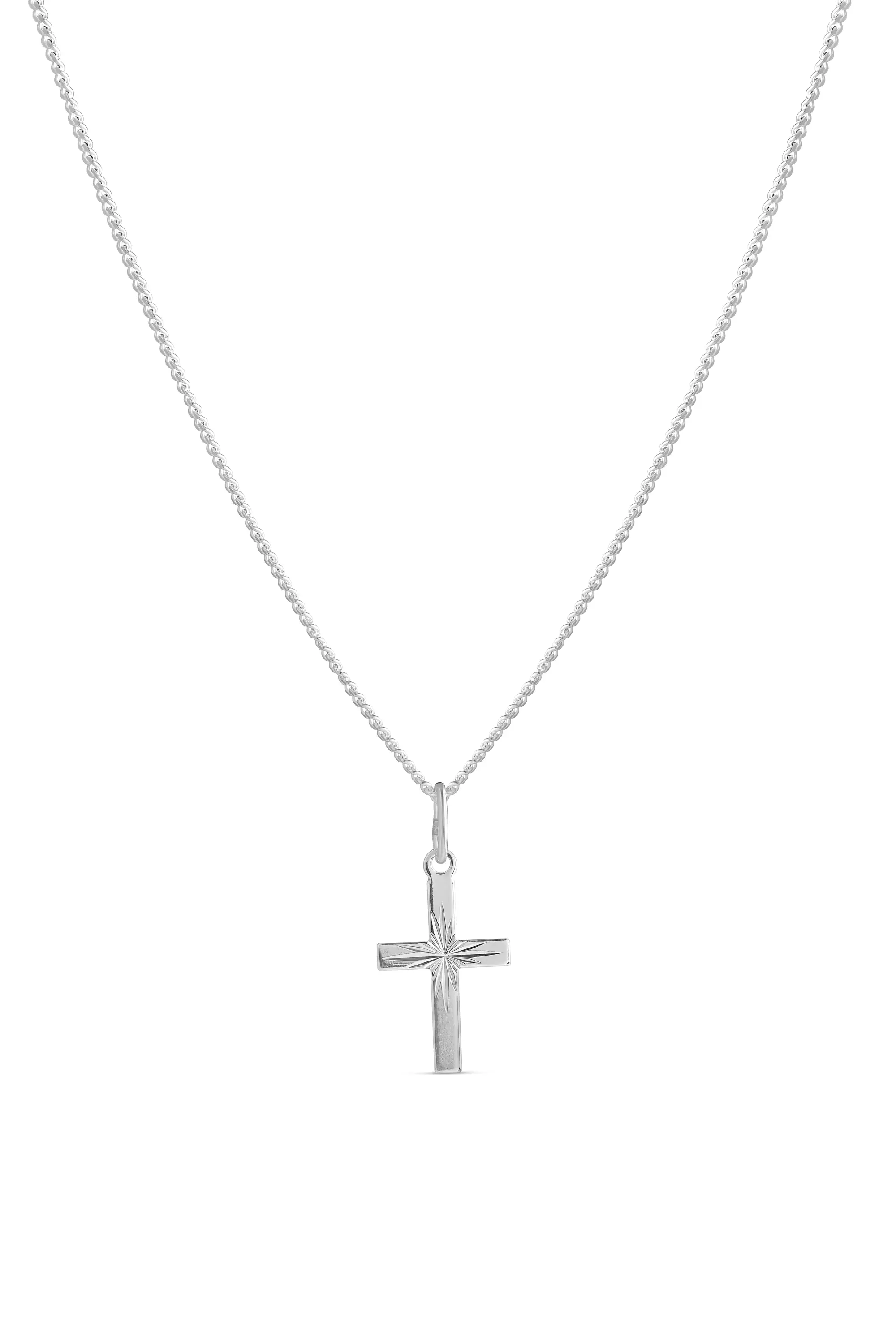 Hopeinen timanttileikattu ristiriipus, elämän tärkeitä hetkiä varten! 925 hopeasta valmistettu klassinen ristiriipus on ainutlaatuinen tyylikkään timanttileikkauksen ansiosta. Riipus roikkuu tyylikkäässä panssariketjussa. Riipuksen koko: 15 x 7mm, Ketjun pituus säädettävä 45/50cm