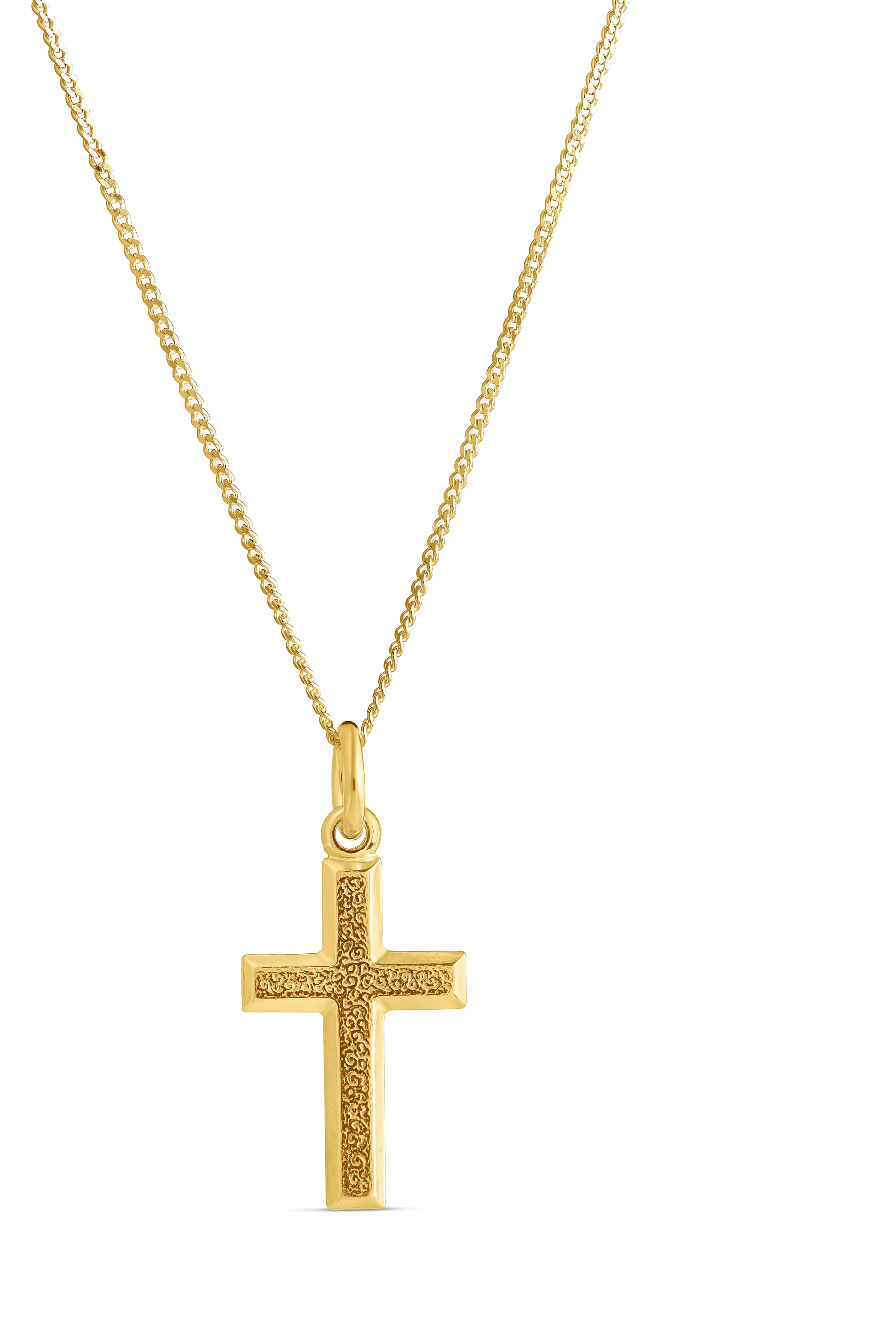 Klassinen ja tyylikäs ristiriipus, joka sopii täydellisesti vaikkapa rippiristiksi! 925 hopeasta valmistetussa ristiriipuksessa on kullattu pinta. Riipus roikkuu hopeisessa panssariketjussa. Tee rististä persoonallinen lisäämällä siihen haluamasi kaiverrus! Riipuksen mitat: 23 x 13 mm.