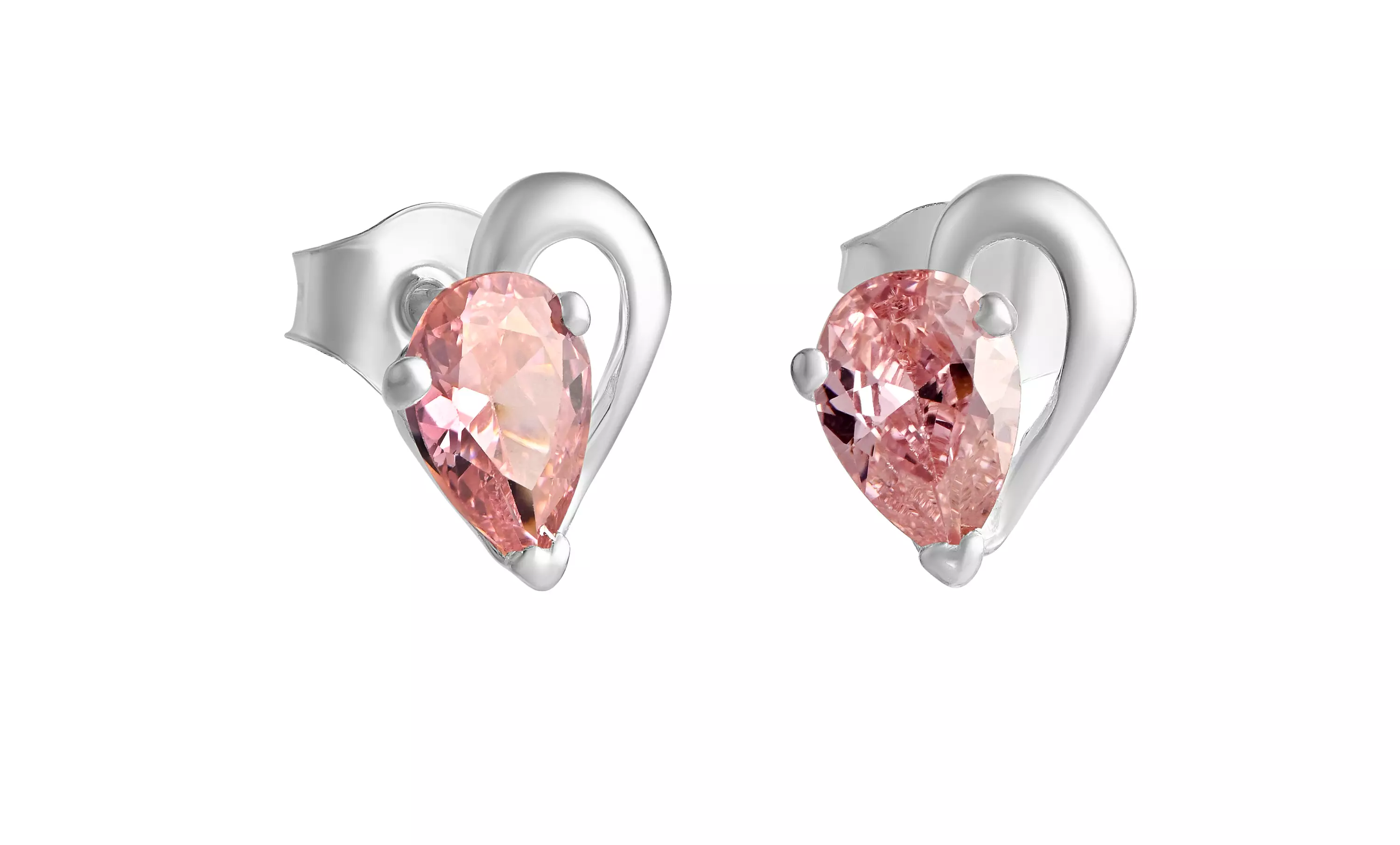 Hopea Sydän korvakoru 1 kivi,pinkki