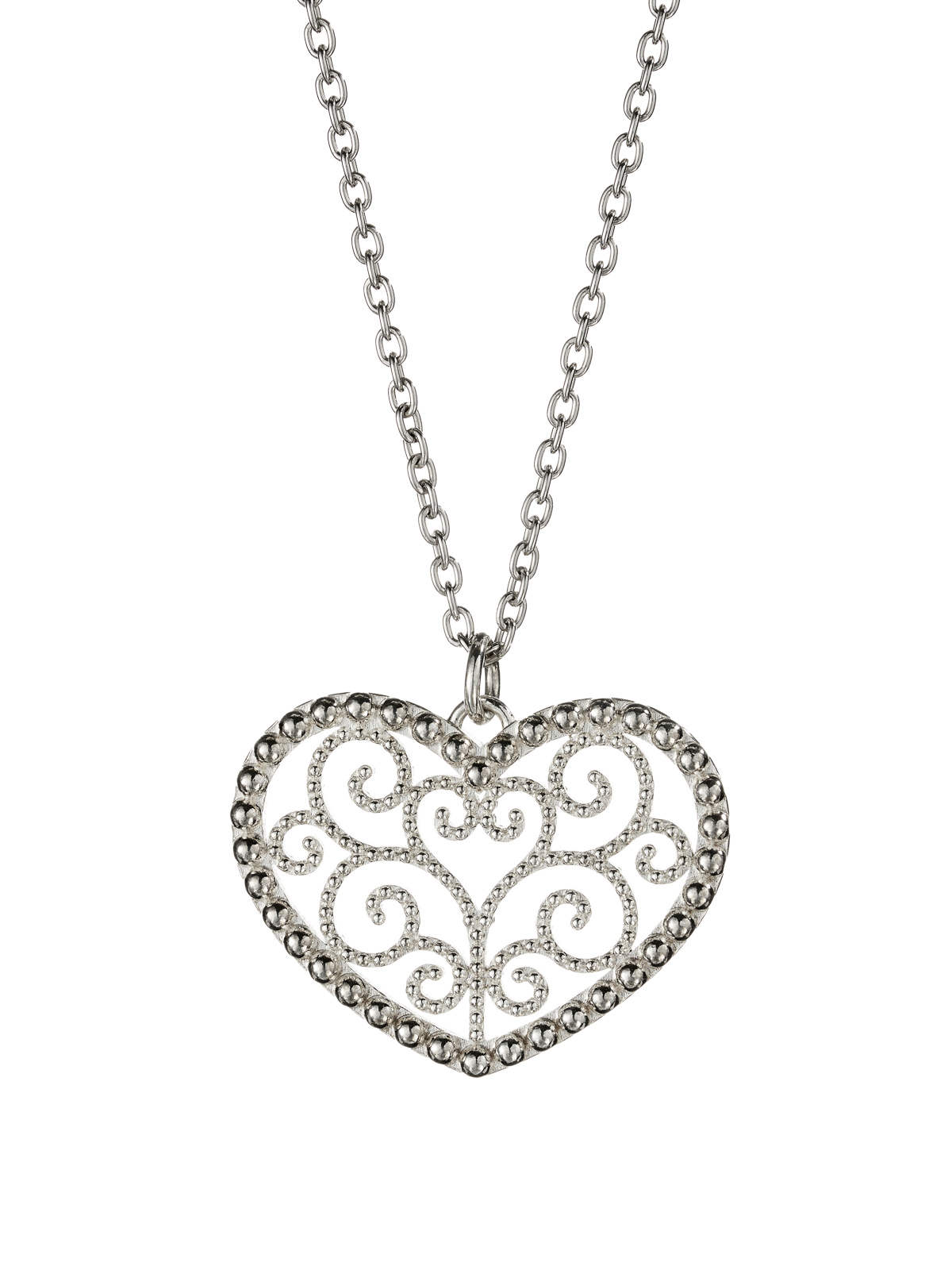 Sydämellinen iso riipus on näyttävämpi kaunotar niin arkeen kuin juhlaan! Kaunis ja herkkä filigraanisydän lepää ajattomassa ankkuriketjussa. Koru on valmistettu 925 hopeasta. Sydämellinen on ihastuttava koko perheen lempikoru!
